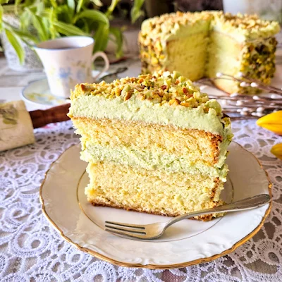Tort waniliowy z kremem pistacjowym