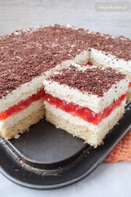 Ciasto tortowe z kremem, galaretką i śmietaną