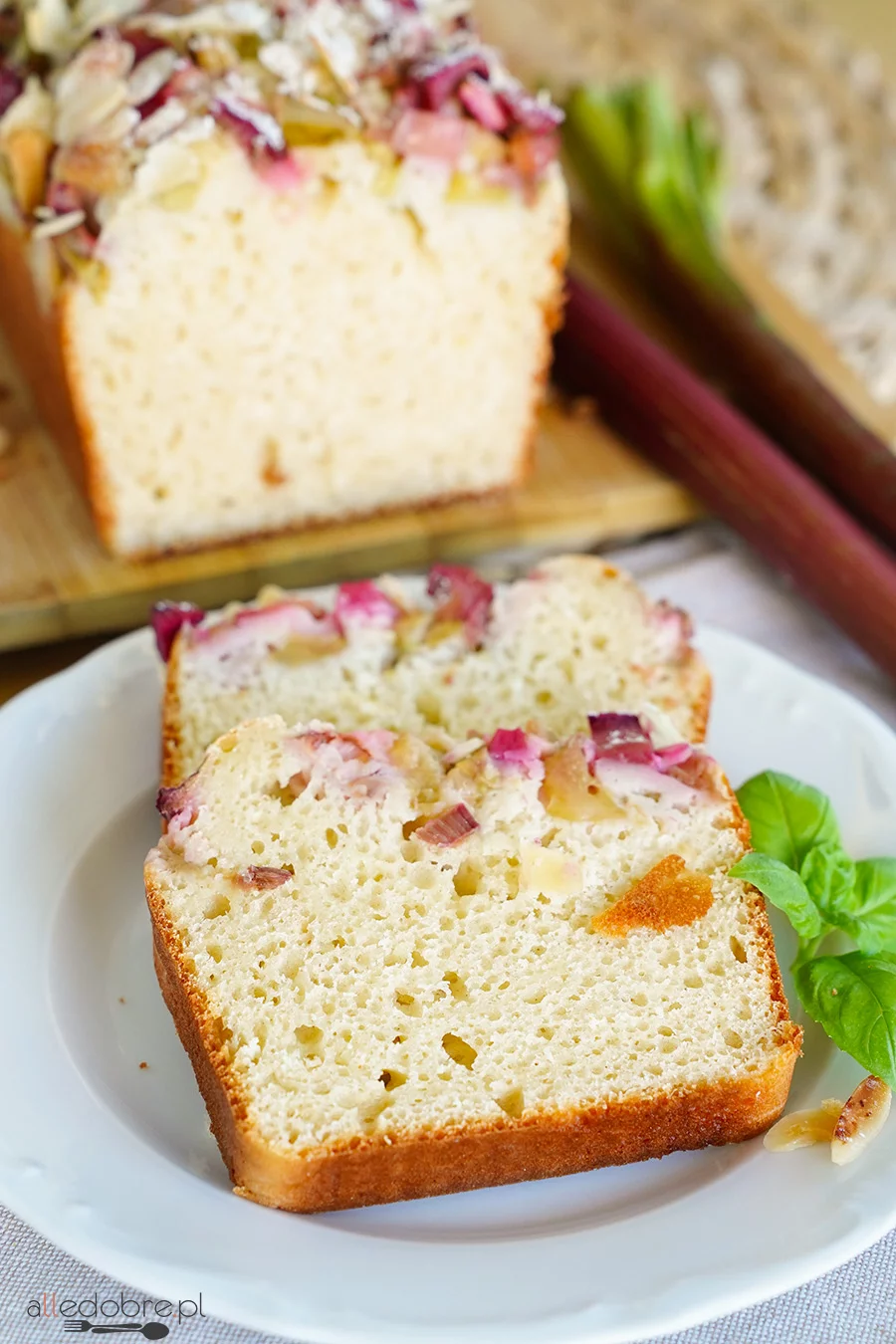 Ciasto Rabarbarek z galaretką i rabarbarem na biszkopcie