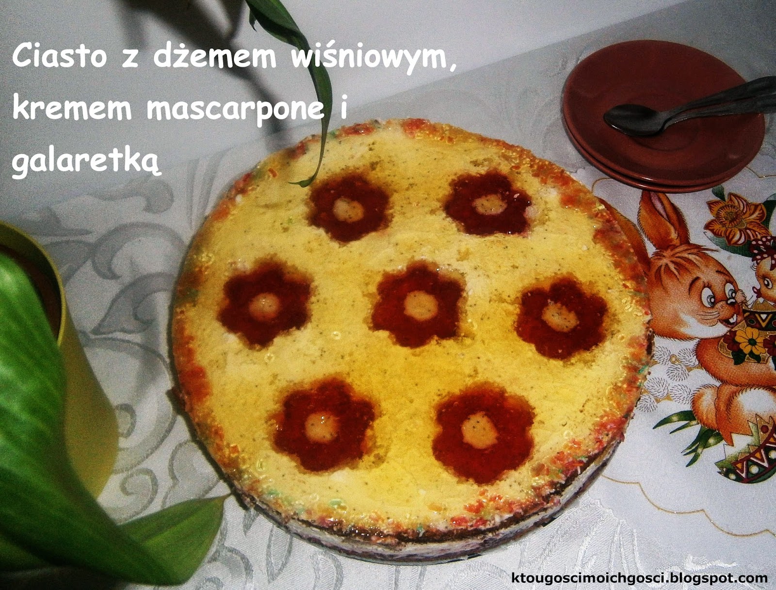 Smaczne, kolorowe ciasto – słodycz kremu z mascarpone przełamana została wiśniowym dżemem,…