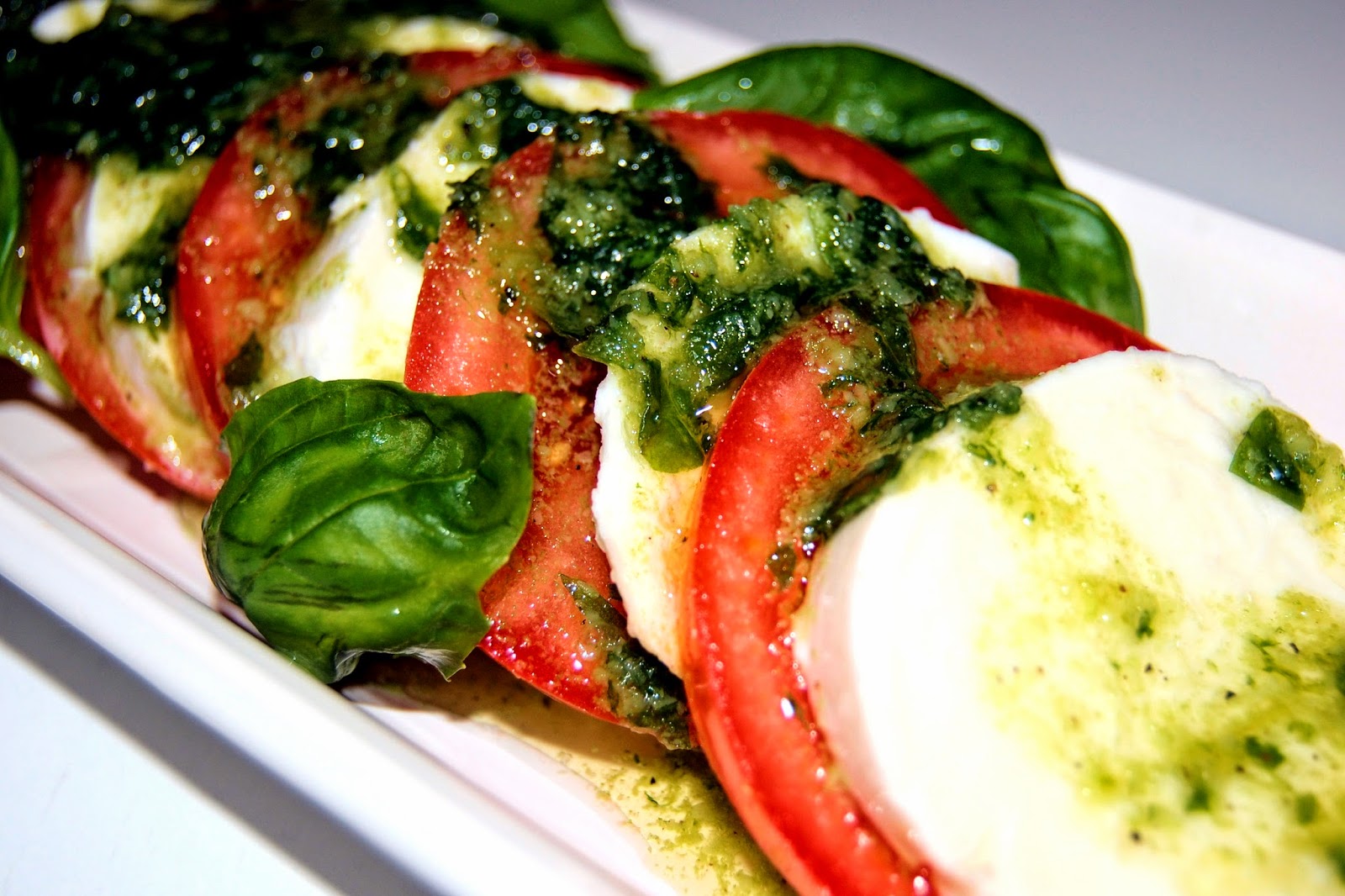 Dzisiaj proponuję chyba najprostszą sałatkę, jaką znam – do jej przygotowania wystarczą w zasadzie cztery składniki – pomidory, mozzarella, bazylia i oliwa oraz 10 minut pracy. Ja proponuję dzisiaj delikatnie wzbogaconą wersję – dodatkowej pracy nie ma zbyt dużo, a efekt jest rewelacyjny. Jak przy każdym prostym daniu bardzo duże