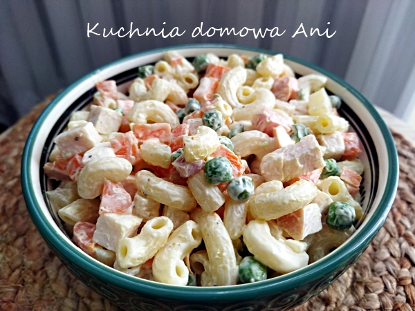 Sałatka makaronowa z groszkiem i kurczakiem