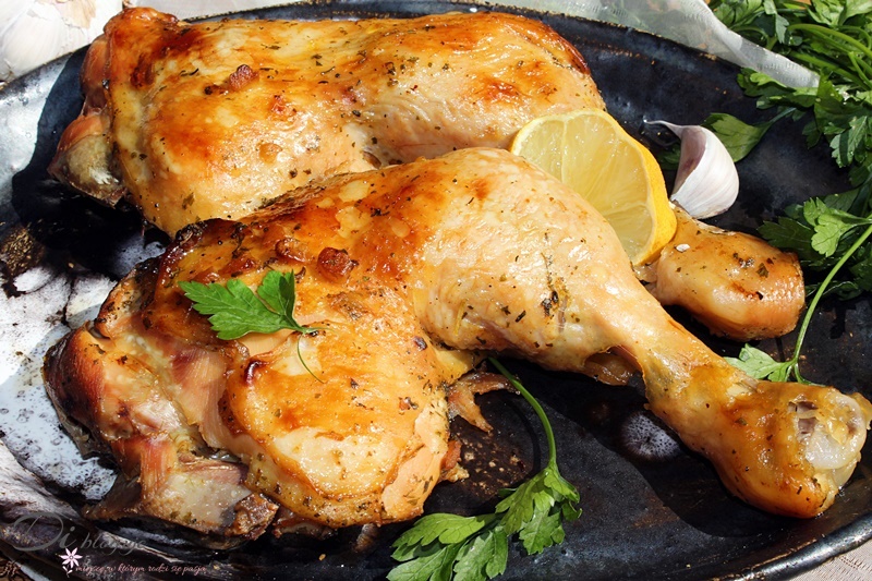 Kurczak pieczony w marynacie czosnkowo-cytrynowej z natką pietruszki i syropem klonowym