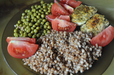 Składniki (na zdjęciu): 100 g piersi z kurczaka50 g kasza gryczana (nieugotowanej)122…