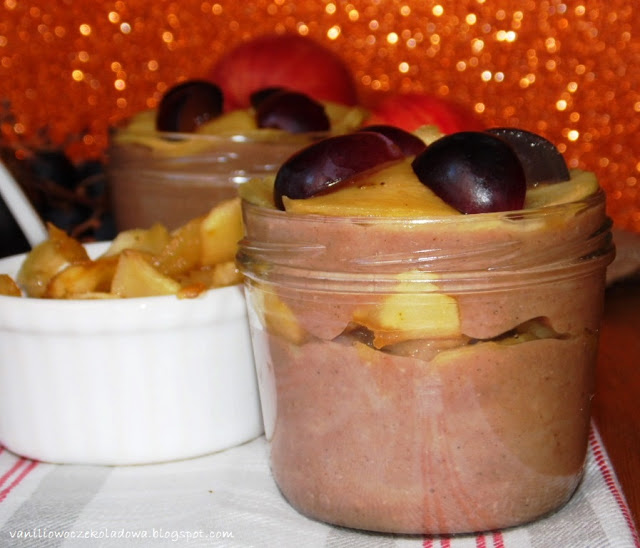 Jesienny deser jaglany z jabłkami duszonymi w miodzie
