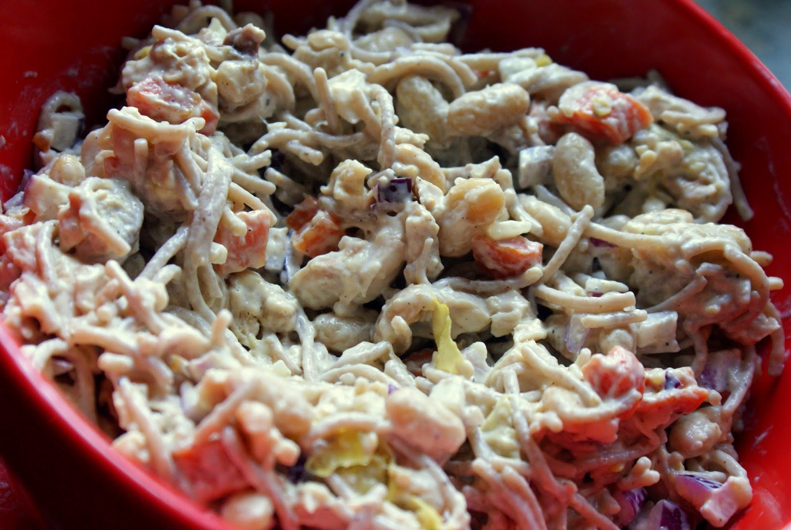 Sałatki wszelkiego rodzaju sprawdzają się zarówno na co dzień, jak i od święta. Można przygotować i coś wyszukanego, i resztkowego. Dzisiaj coś pół na pół. Przyczynkiem do zrobienia sałatki był pozostały gotowany kurczak – pierś.