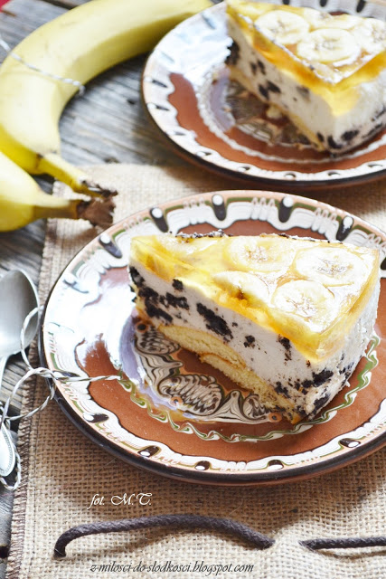 Sernik Oreo na zimno z bananami i galaretką