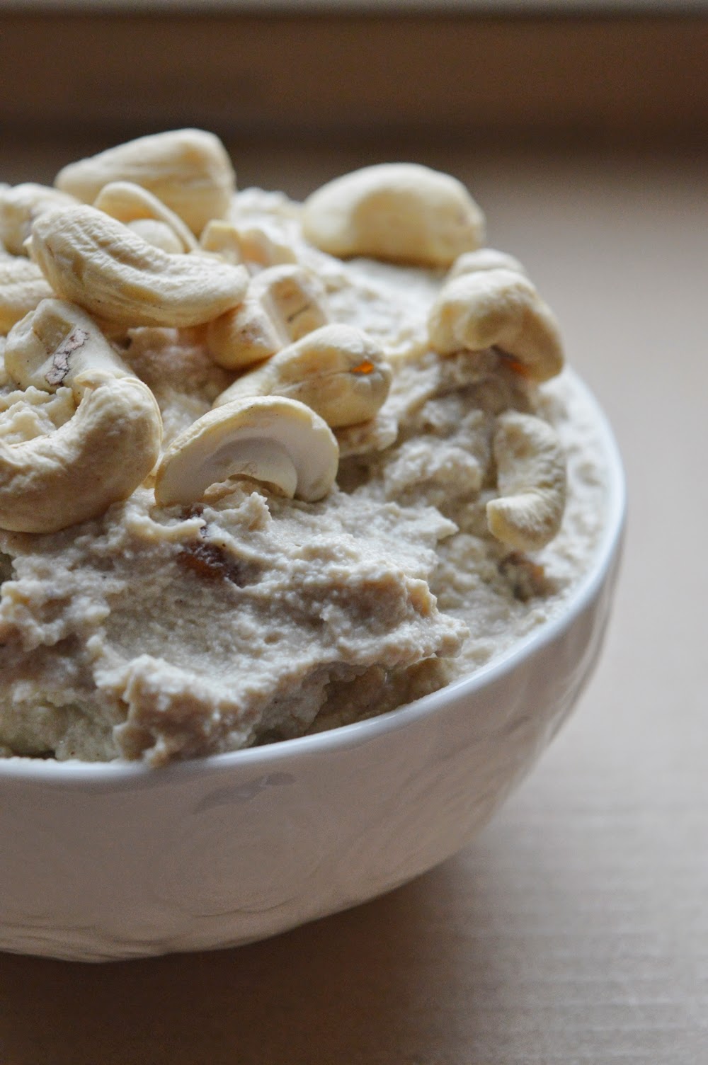 nerkowcowy tofurem z morelami suszonymi na słońcu, połową banana i nerkowcami