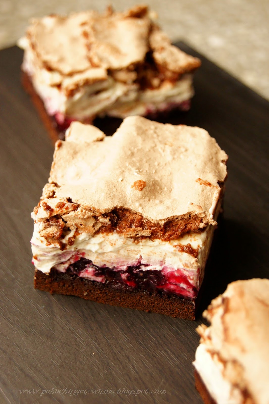 Ciasto śmietanowo-porzeczkowe z bezą