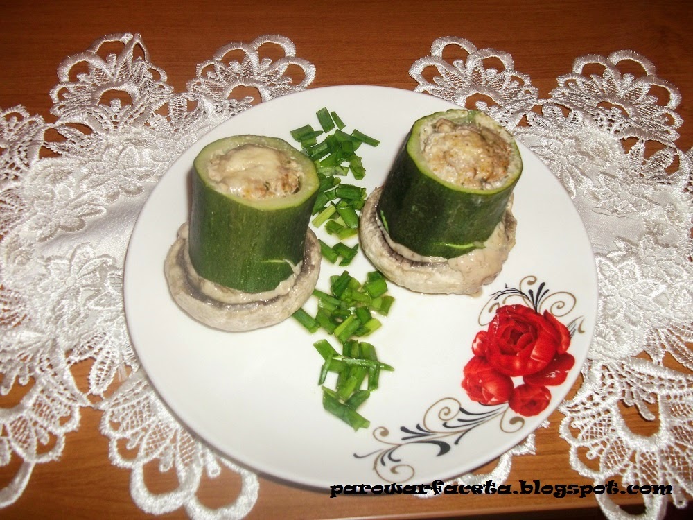 Od kilku dni przymierzałem się, żeby zrobić danie z cukinii i mięsa mielonego. W końcu się udało 🙂 Doszły do tego jeszcze pieczarki. Przeważnie kupuje je bardzo duże, takie jak na zdjęciach, wtedy mniej z nimi pracy 🙂 W innych daniach są pokrojone, a tu w końcu widać, jakiej są
