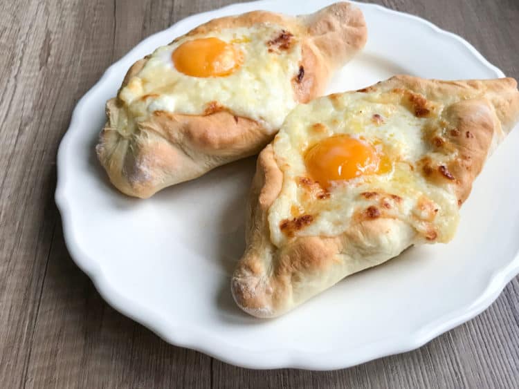 Gruziński chlebek w kształcie łódeczki wypełnionej nadzieniem z kilku rodzajów sera i…