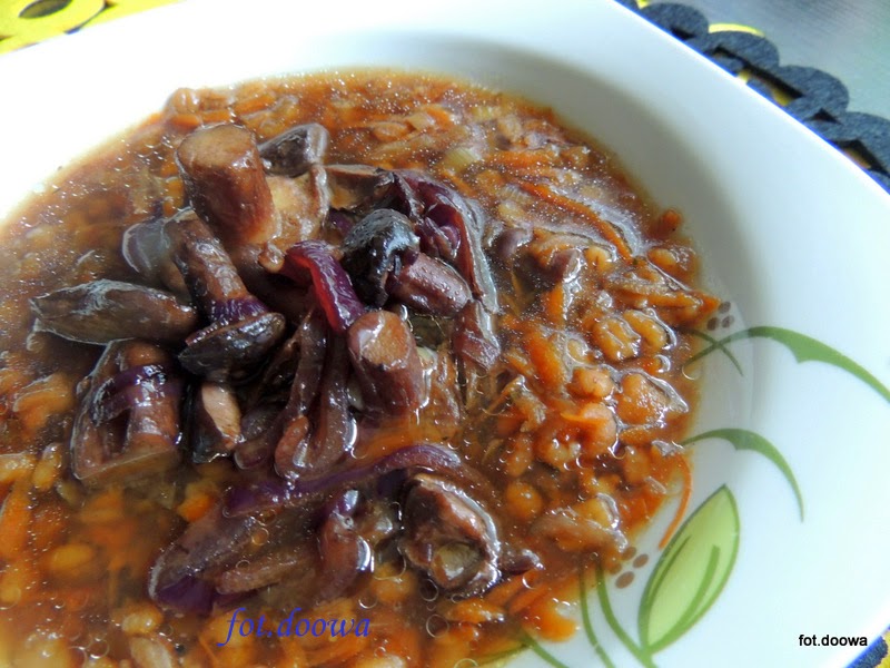 Zupa grzybowa, mam jej wiele wersji i wszyskie pyszne ale z pęczakiem…