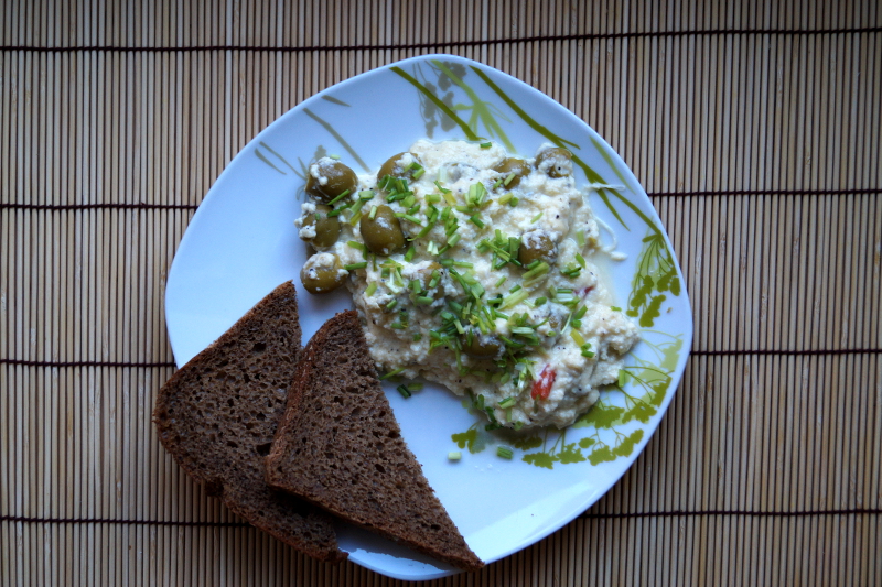 Jajecznica z oliwkami Drukuj przepis Składniki4 średnie jaja2 łyżki śmietany 12% zioła tymianek, bazylia, sól, pieprz3 łyżki zielonych oliwek1 pęczek szczypiorku1 łyżka oliwy z oliwek