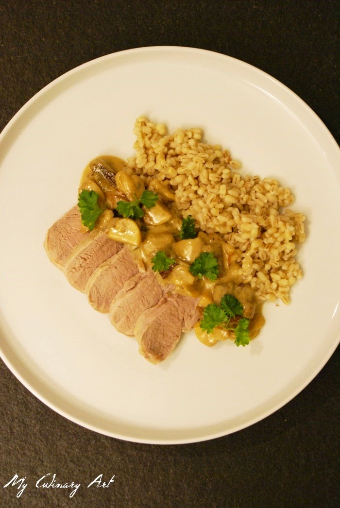 Dzisiaj zapraszam na risotto z kaszą, czyli kaszotto 😉 z pysznym grzybowym sosem i duszoną polędwiczką wieprzową. Zapraszam do gotowania!