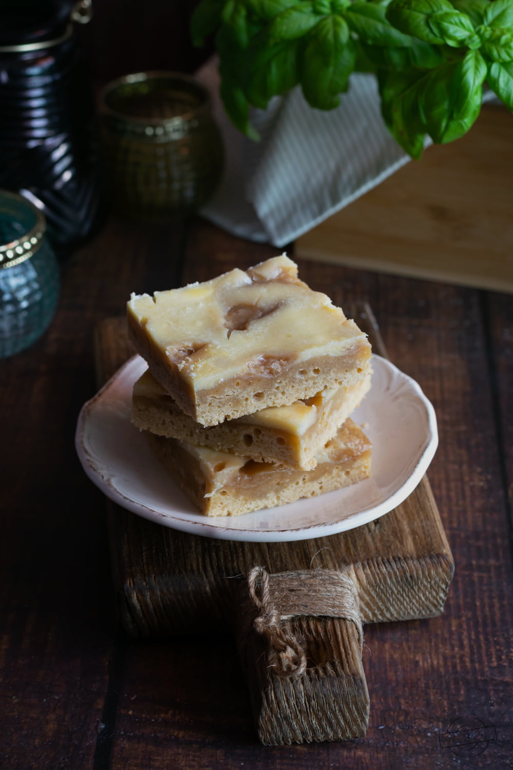 Niewysokie, ale pyszne ciasto o wyraźnym posmaku masła orzechowego, z warstwą serową…