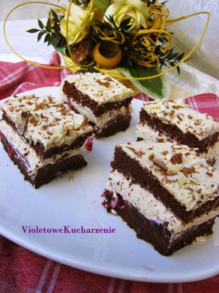 Mięciutki biszkopt z kawałkami czekolady, kwaskowatość malin i granatu oraz słodycz chałwy sprawiają, że ciasto jest tak pyszne. Jeden kawałek do kawy to zdecydowanie za mało.
