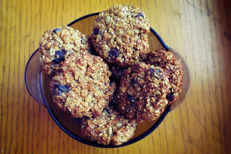 Mocno kalorycznie, ale raczej zdrowo, raczej, bo z masłem, zdrowo, bo zdecydowanie więcej od masła jest bakalii, orzechów itp., czyli wszystkiego co najlepsze. Niebawem zamierzam wypróbować wersje ciastek bez masła, z miodem, ale na to przyjdzie pora, a dziś przepis, który został już sprawdzony, ciasteczka zasmakowały, więc już nie