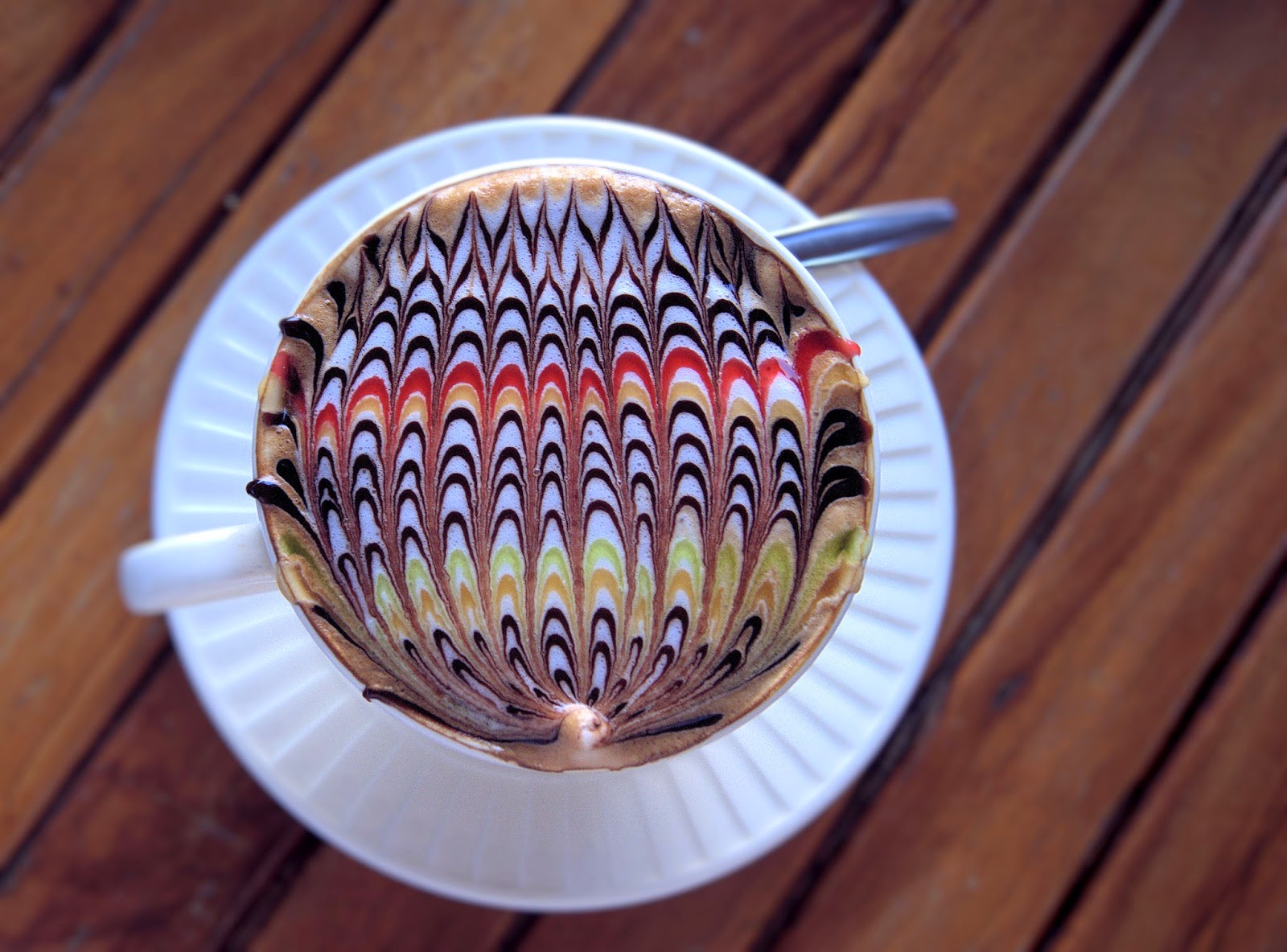 Spacerując promenadą nad sztucznym jeziorem, w małym miasteczku Phayao na północy Tajlandii, można trafić do uroczej kawiarenki serwującej chińskie herbaty i pyszną kawę. Zamawiając late w gratisie dostaje się przepiękne dekoracje, wykonywane sosami smakowymi i wykałaczką. Nie jeden barista może pozazdrościć talentu 🙂