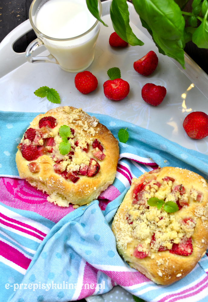 Drożdżówki z truskawkami, rabarbarem i kruszonką