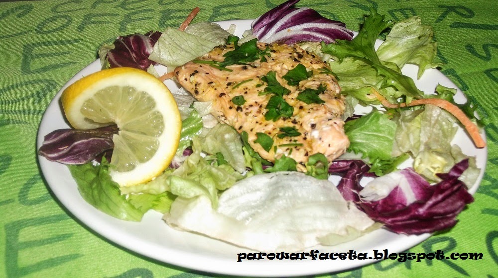 Łosoś miał być na piątkowy obiad 🙂 I w sumie był, ale pora trocha inna 🙂 Po pracy poszedłem spać, na godzinkę, dwie… wstałem w nocy i wtedy wziąłem się za parowanie 🙂