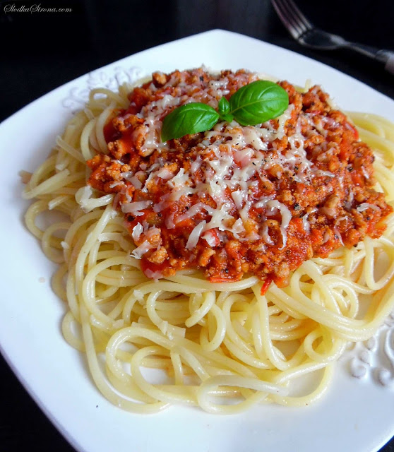 Spaghetti z mięsem mielonym w sosie pomidorowym do pyszne, pożywne danie, którego…