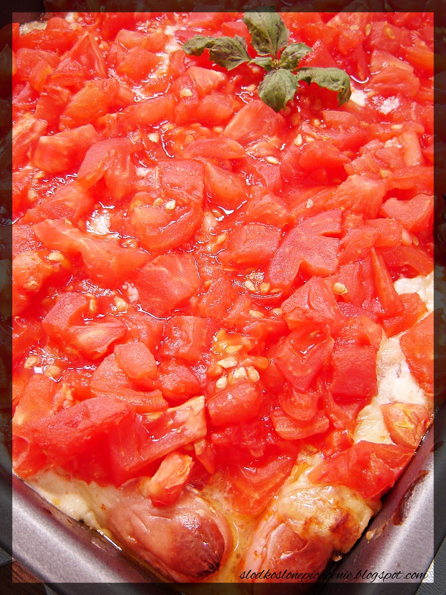 Parówki zapiekane z pomidorami i żółtym serem w sosie śmietanowo-musztardowym, choć nie…