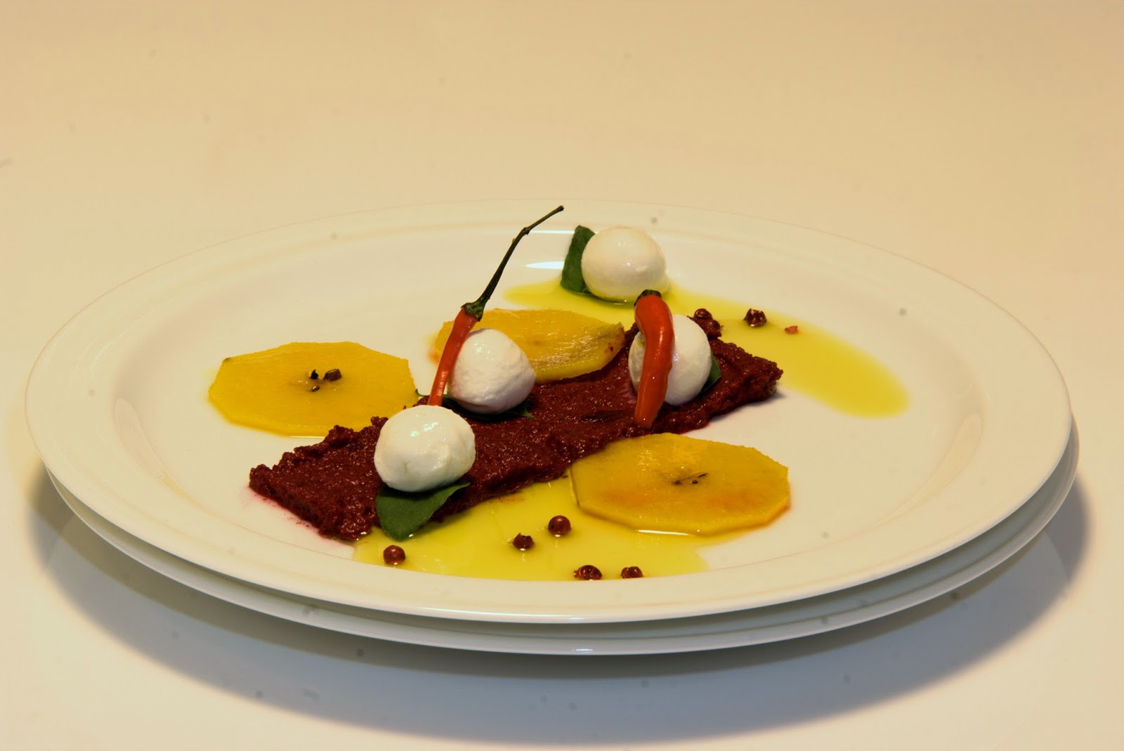Zimowa sałatka w żywych kolorach. Bardzo udane połączenie słodkich buraczków, słonego sera, pikantnych gruszek i aksamitnej oliwy.