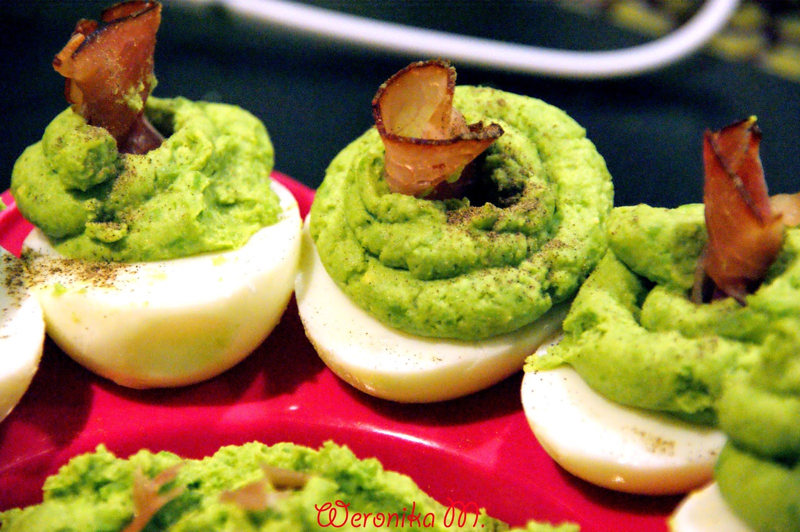 Kochani dzisiaj przygotowałam dla Was kolejną propozycję zimnych przekąsek, które idealnie się nadają na spotkania ze znajomymi. Będzie to przepis na jajka z pastą z groszku i szynką parmeńską, które na pewno zaskoczą wszystkich smakiem i zielonym kolorem nadzienia 😉
