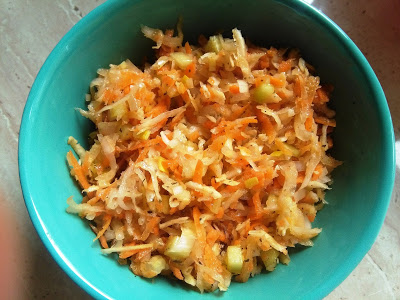 Zdrowy i kolorowy dodatek do obiadu. Składniki: 40 dag białej rzodkwi10 dag…