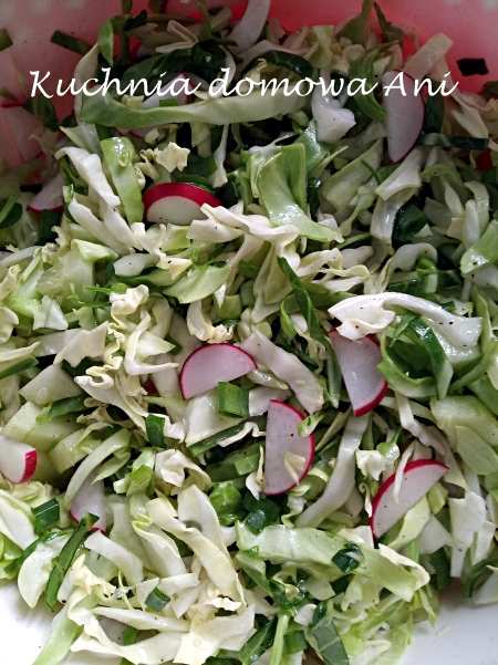 Surówka na bazie młodej kapusty z nowalijkami. Pyszna i chrupiąca, że chce…