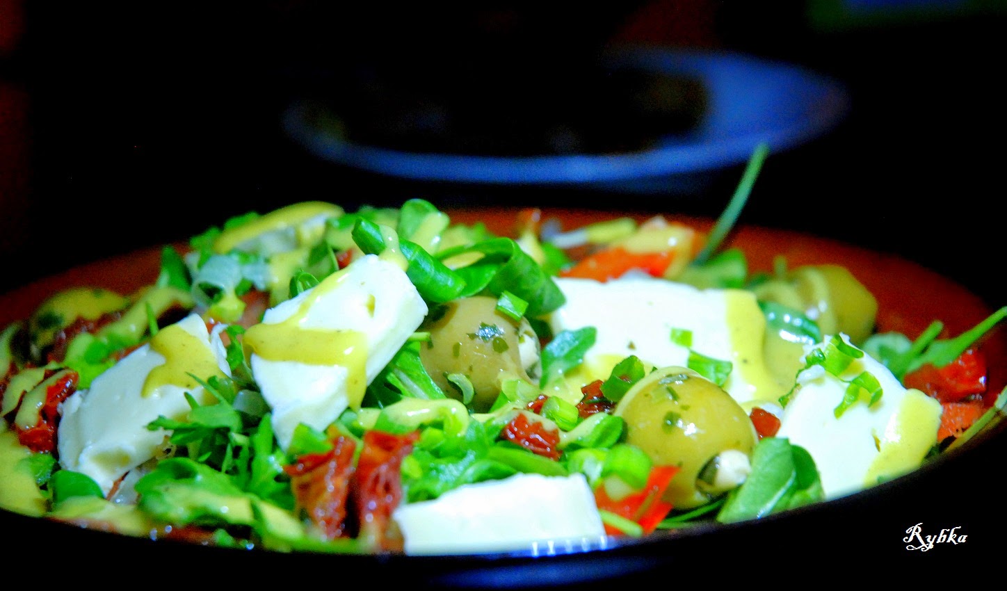 Tym razem przepyszna śródziemnomorska sałatka :)Latem niemalże codziennie na obiad szykuję sobie różna sałatki,bardziej skomplikowane, mniej, ale zawsze.Przede wszystkim nie czuje się po nich ciężko, są zdrowe do bólu, kolorowe i przeeeeeepyszne 🙂 🙂