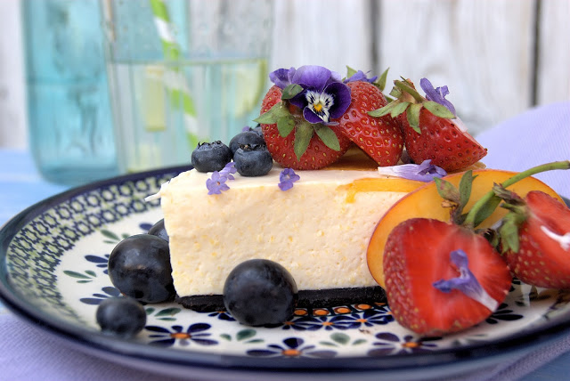 Sernik brzoskwiniowo-lawendowy na spodzie oreo