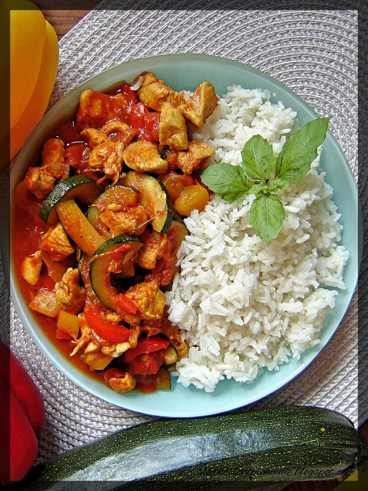 Ryż z kurczakiem, papryką i cukinią to pyszne, aromatyczne i szybkie w…