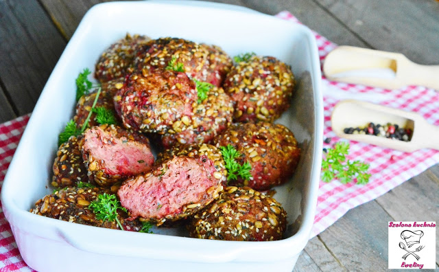 Kotleciki z niespodzianką w sezamie i słoneczniku