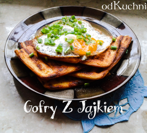 Może i dziwnie to brzmi ale połączenie tych wytrawnych gofrów z sadzonym jajkiem o płynnym żółtku i odrobiną szczypiorku jest po prostu obłędne. Jedyne czego mi akurat zabrakło, a co dopełniłoby smaku, to sos holenderski (następnym razem :)). Z całego ciasta powstaną nam 2-3 gofry w zależności od tego jak