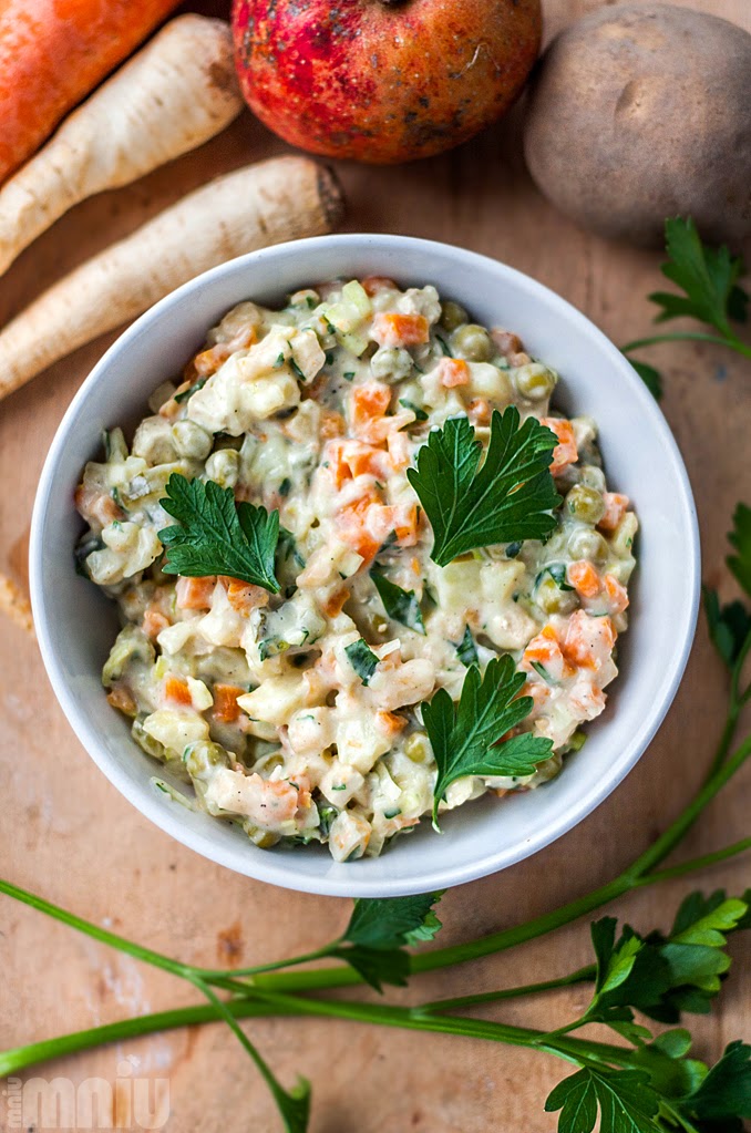 Święta Bożego Narodzenia bez Kevina i sałatki jarzynowej nie istnieją! Od najmłodszych lat uwielbiałam robić ją wspólnie z mamą i siostrą, do późna gotowałyśmy i kroiłyśmy warzywa. Sałatki jarzynowej nie da się nie kochać, chociażby przez te wspomnienia. Moja nowa wersja oparta jest na warzywach korzeniowych, które zamiast gotować upiekłam.