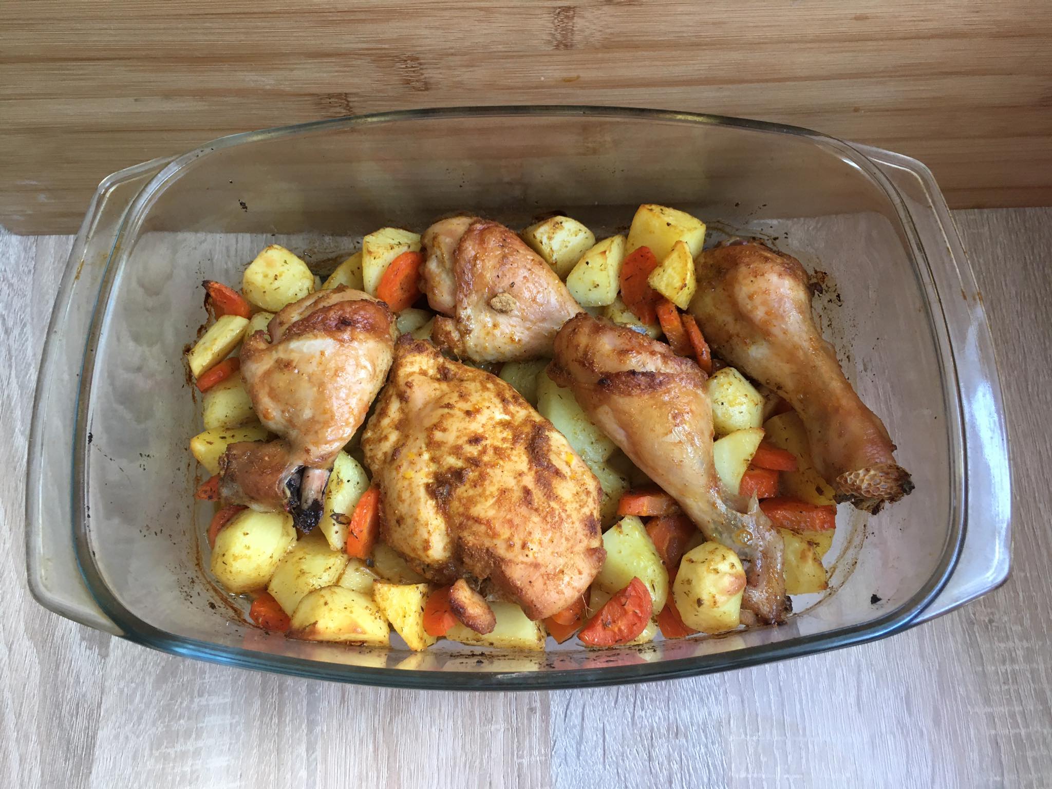 Pieczone udka z ziemniakami i marchewką