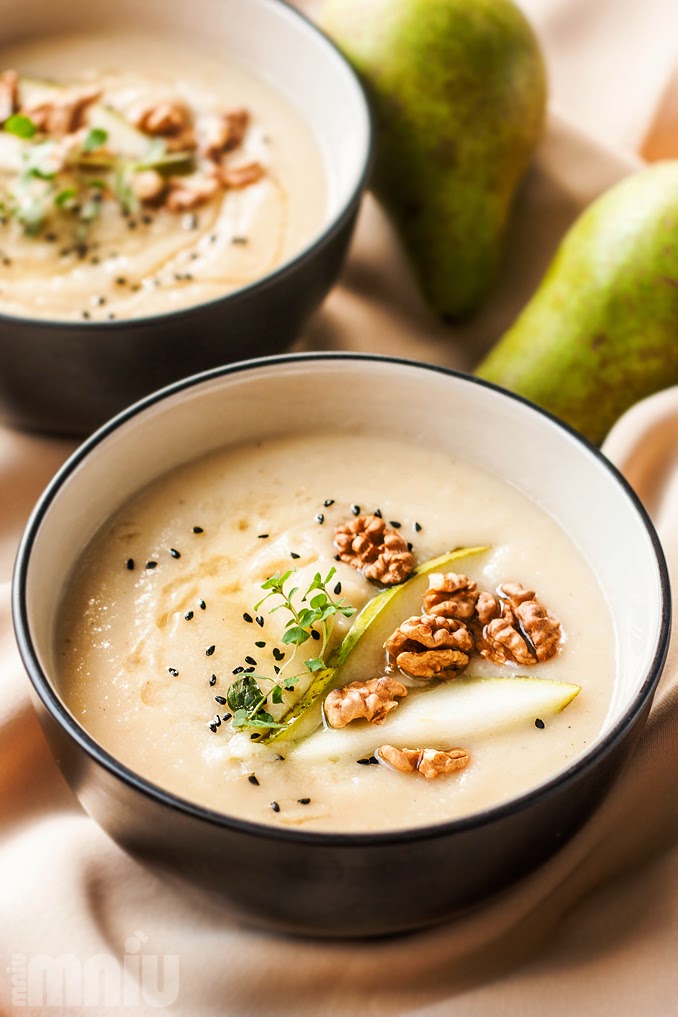 Kremowa, aromatyczna zupa, idealna na jesienno-ziomowe chłodne dni. Słodkawa gruszka i pietruszka, do tego lekko kwaśne białe wino tworzą niebywale apetyczne połączenie. By złamać słodycz podaję ją z nasionami czarnuszki i orzechami włoskimi, które dodają smakowity element chrupkości.
