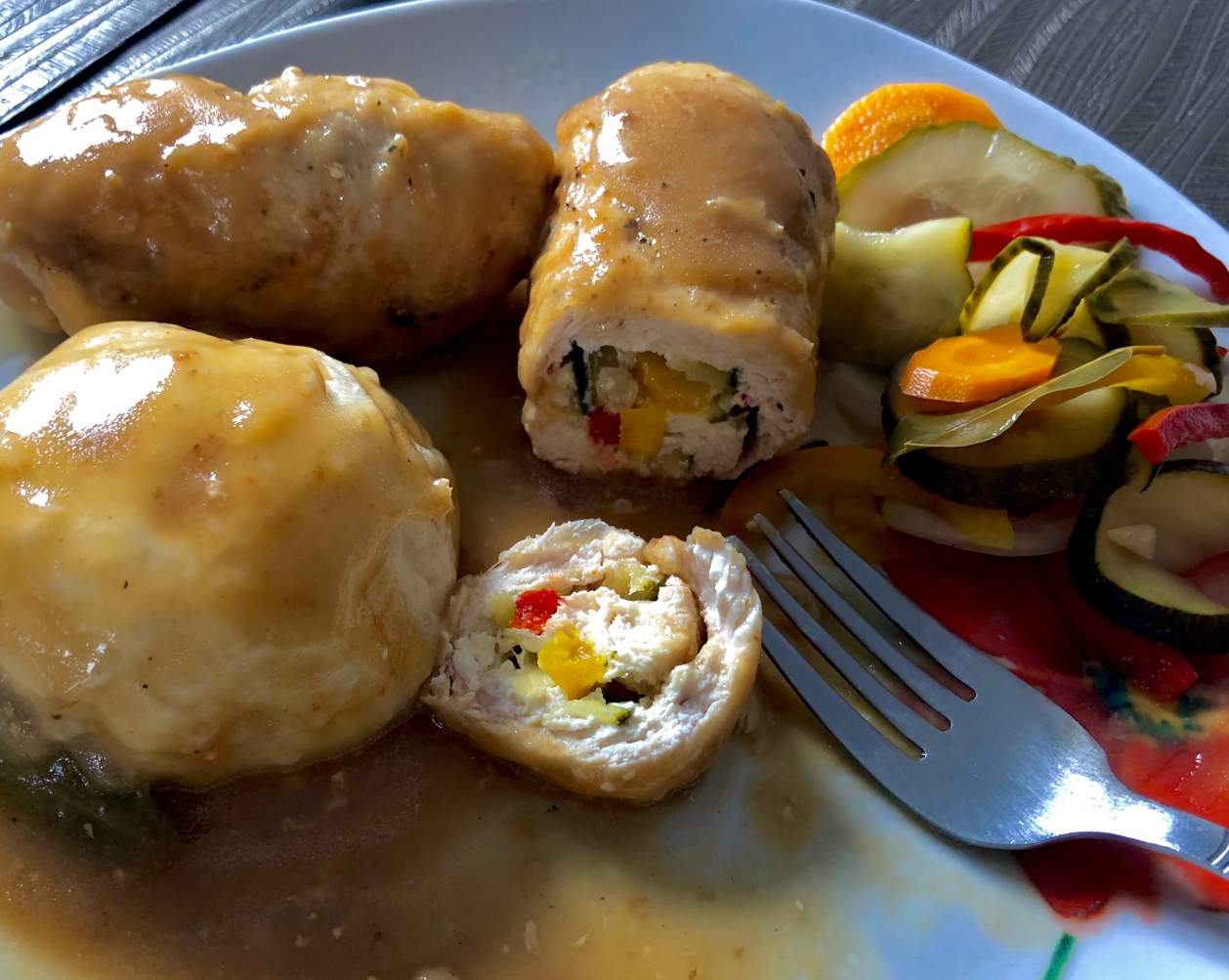 Roladki drobiowe z serkiem i warzywami Przepyszne roladki z kurczaka, wypełnione warzywnym…