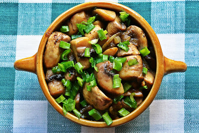 Pieczarki z dymką i szczypiorem z patelni