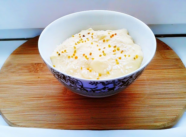 ~ Gotowany serniczek waniliowy z wiórkami kokosowymi i pyłkiem