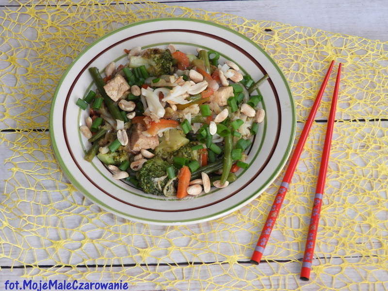 Tofu z makaronem i warzywami po chińsku