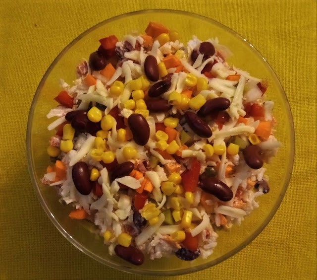 Sałatka ryżowa z różnymi dodatkami, dla smakoszy sałatek:) — SKŁAD: 300g ryżu,…