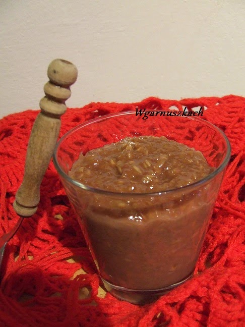 składniki:1/2 szklanki płatków owsianych górskich2/3 szklanki mleka (ja dolałam ciepłe )2 łyzki kakao (ja dałam rozpuszczalne, granulowane)(jeśli ktoś lubi baaaardzo słodkie można dosłodzić np. miodem,