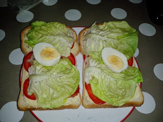 1 jajko 2 listki sałaty1 pomidor cebula 2 kromki chleba masłosólpieprzKromki chleba…