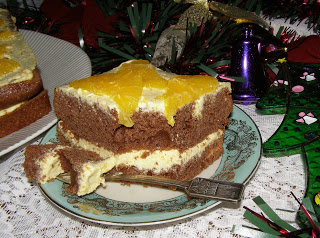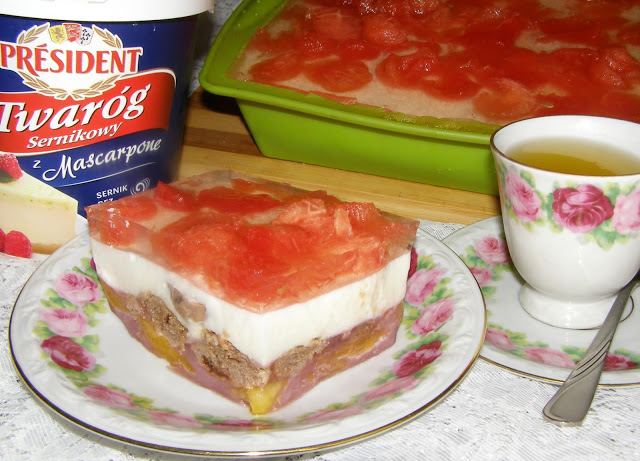 smaczny brzoskwiniowo-arbuzowy z czekoladą sernik na zimno…