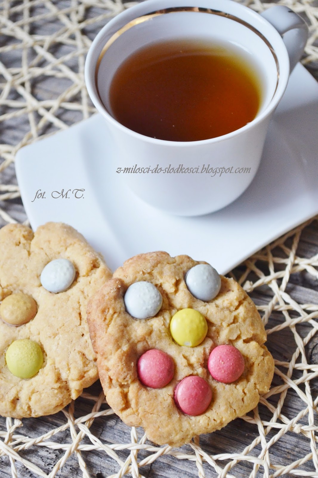 Mój synek bardzo lubi pomagać mi w kuchni, szczególnie przy pieczeniu ciasteczek:)) Te robimy zdecydowanie najczęściej, eksperymentując z dodatkami. Tym razem zwyciężyły kolorowe drażetki, lentilki. Tradycyjnie, ciasteczka zniknęły o wiele za szybko:)