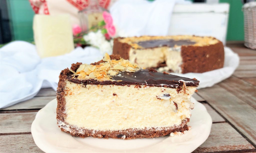 Wspaniały, kremowy sernik Amaretto. Z przepyszną warstwą czekolady i prażonymi płatkami migdałów.…
