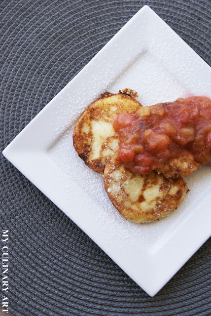Serniczki z patelni z sosem rabarbarowym