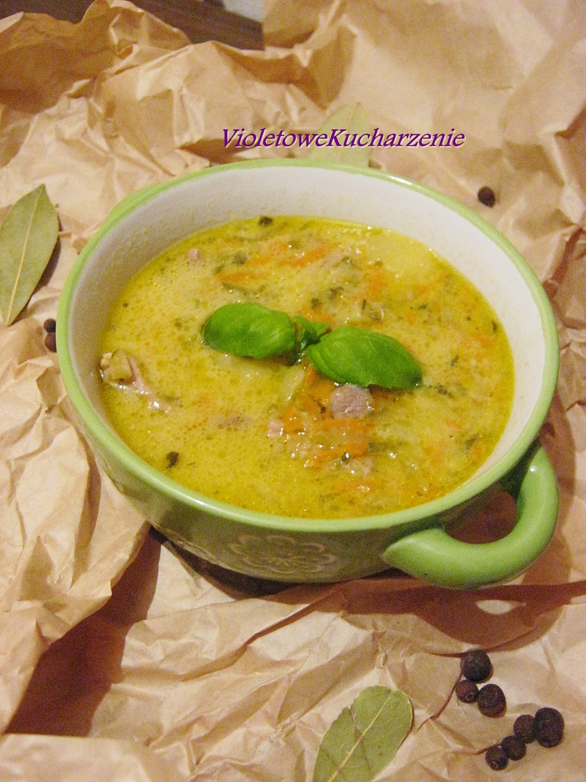 Delikatne mięsko i domowy przecier ogórkowy, uwielbiam taka ogórkową. Do tego zaciągnięta śmietanką. Pycha!